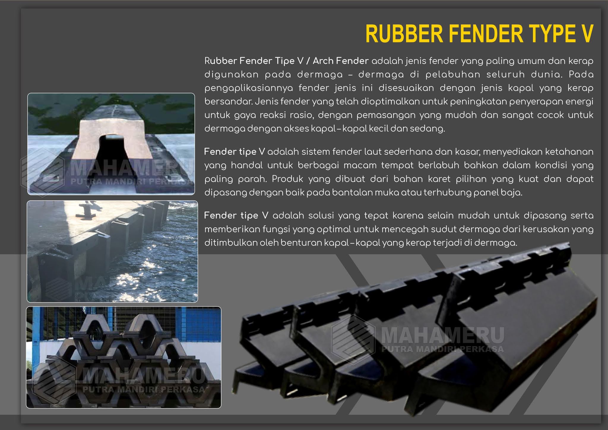 Spesifikasi atau Gambar detail Rubber Fender Tipe V 500H (1000L- 3000L) kota Samarinda