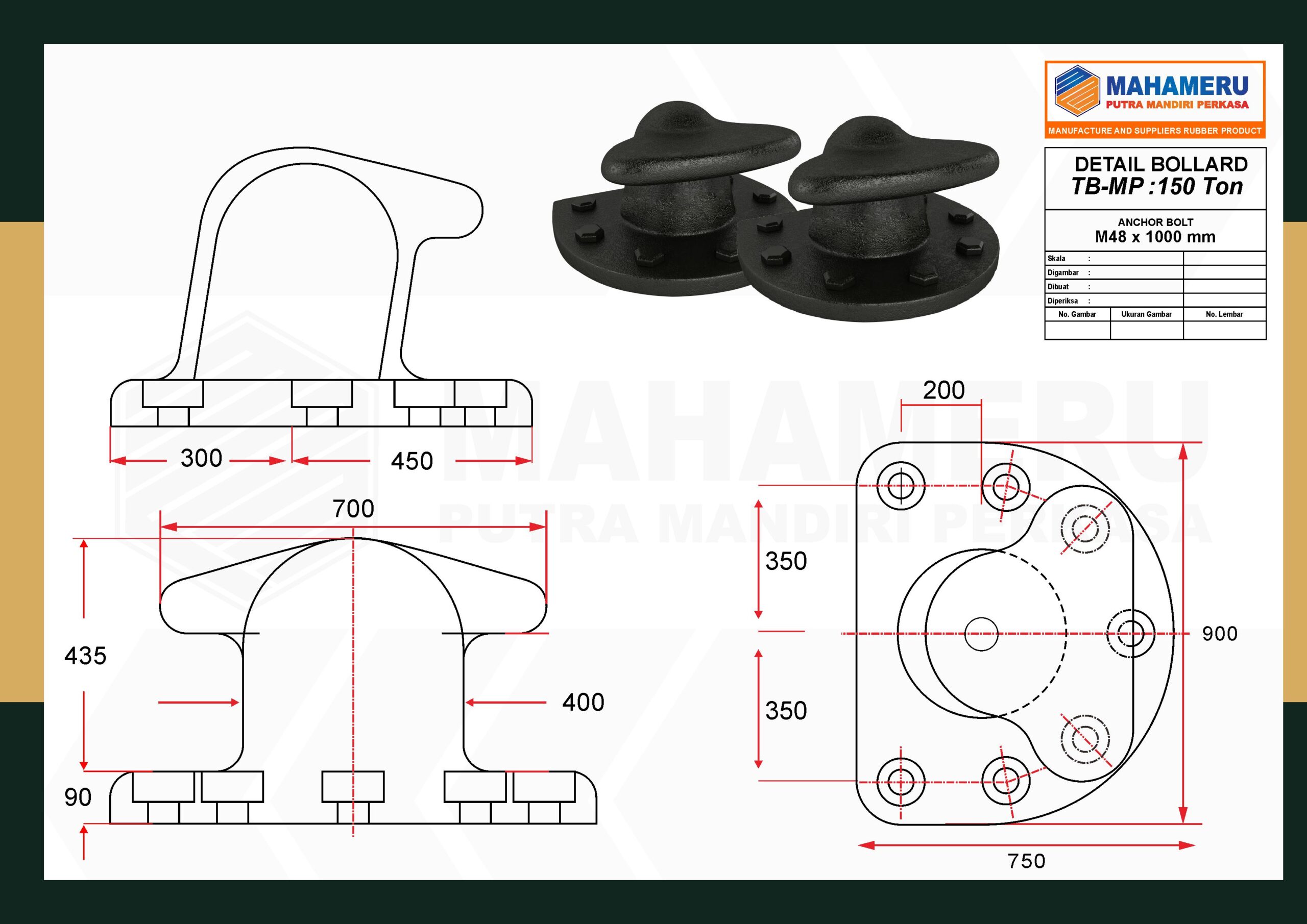 perubahan pada dimensi bollard. Misalnya, bollard 100 ton akan memiliki ukuran