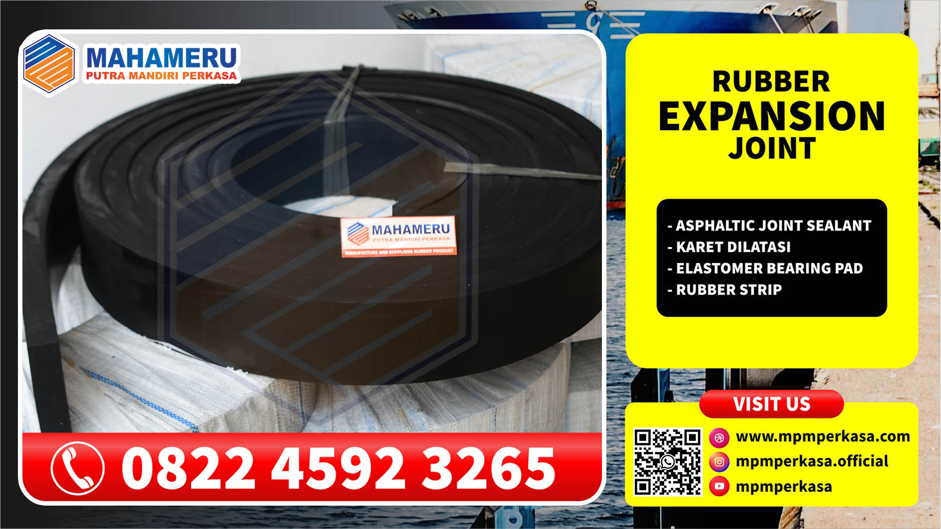 Mahameru Putra Mandiri perkasa merupakan perusahaan manufaktur rubber yang memproduksi salah satu produk unggulan kami yaitu Expansion Joint Seal. Material yang digunakan adalah jenis bahan karet alam (NR) atau karet sintetis sesuai dengan kebutuhan.
