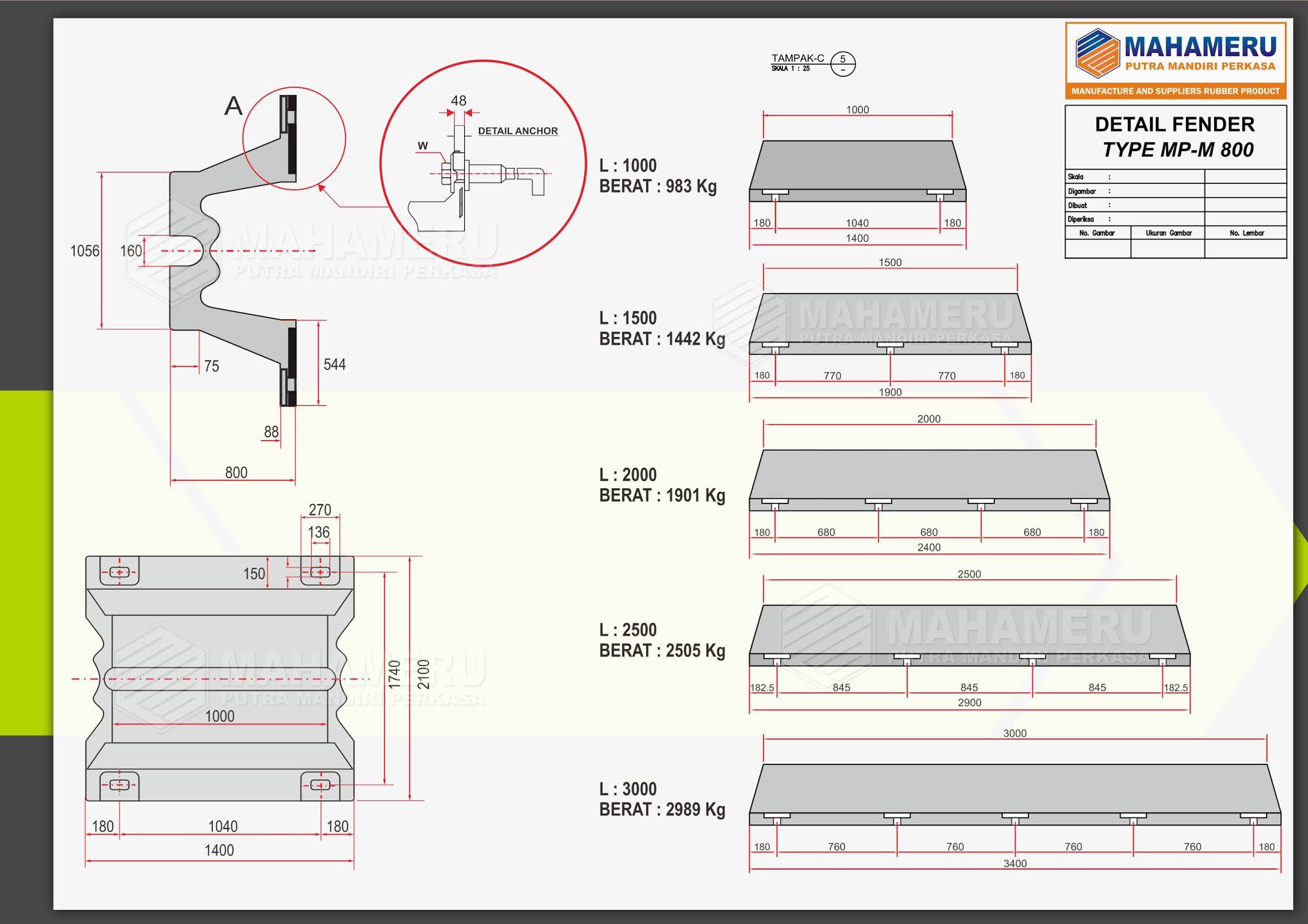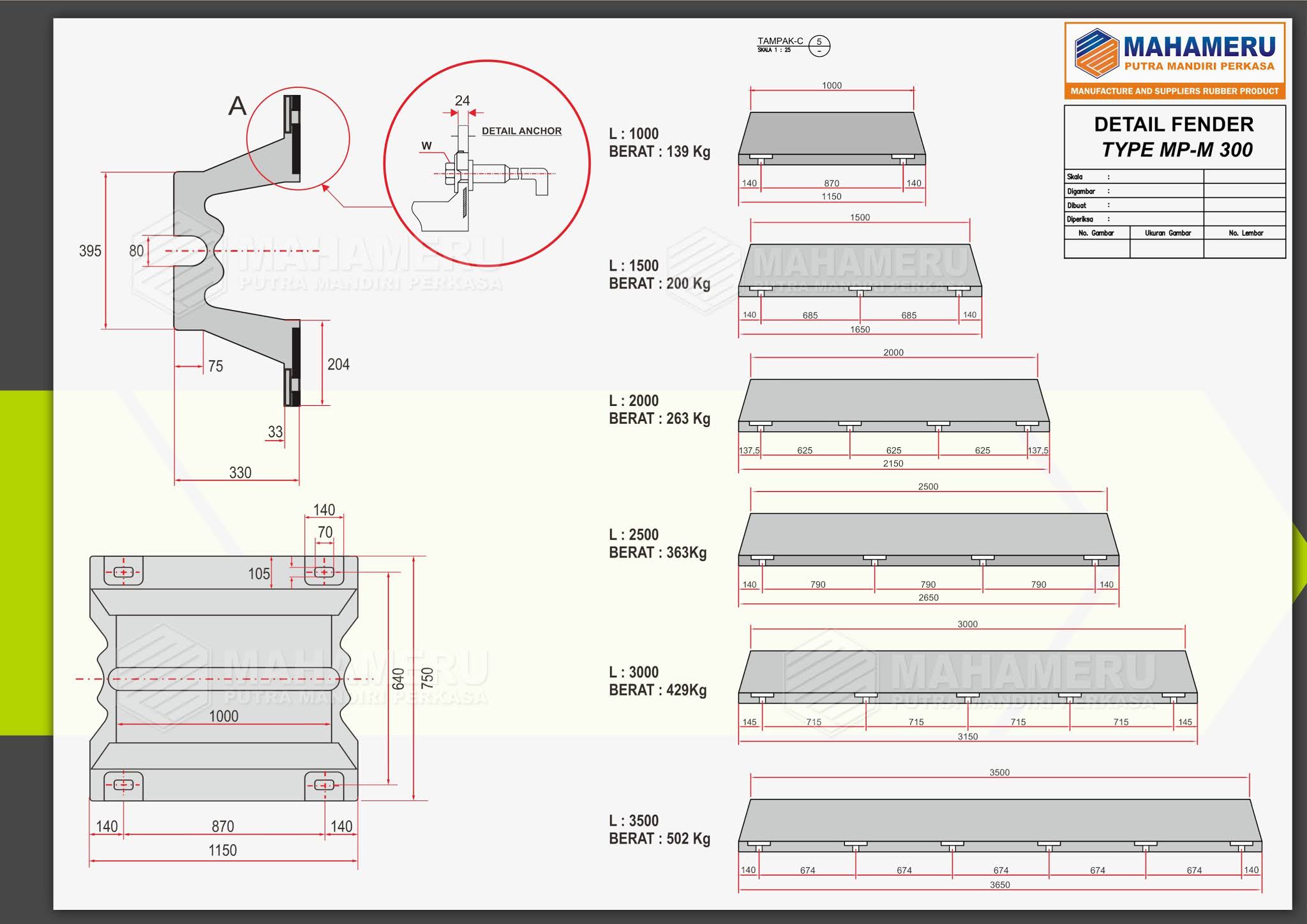 Pada dasarnya karet fender tipe M ini memiliki ukuran Tinggi (H) sama dengan karet fender tipe V, karet fender tipe A dan karet fender tipe ANP.