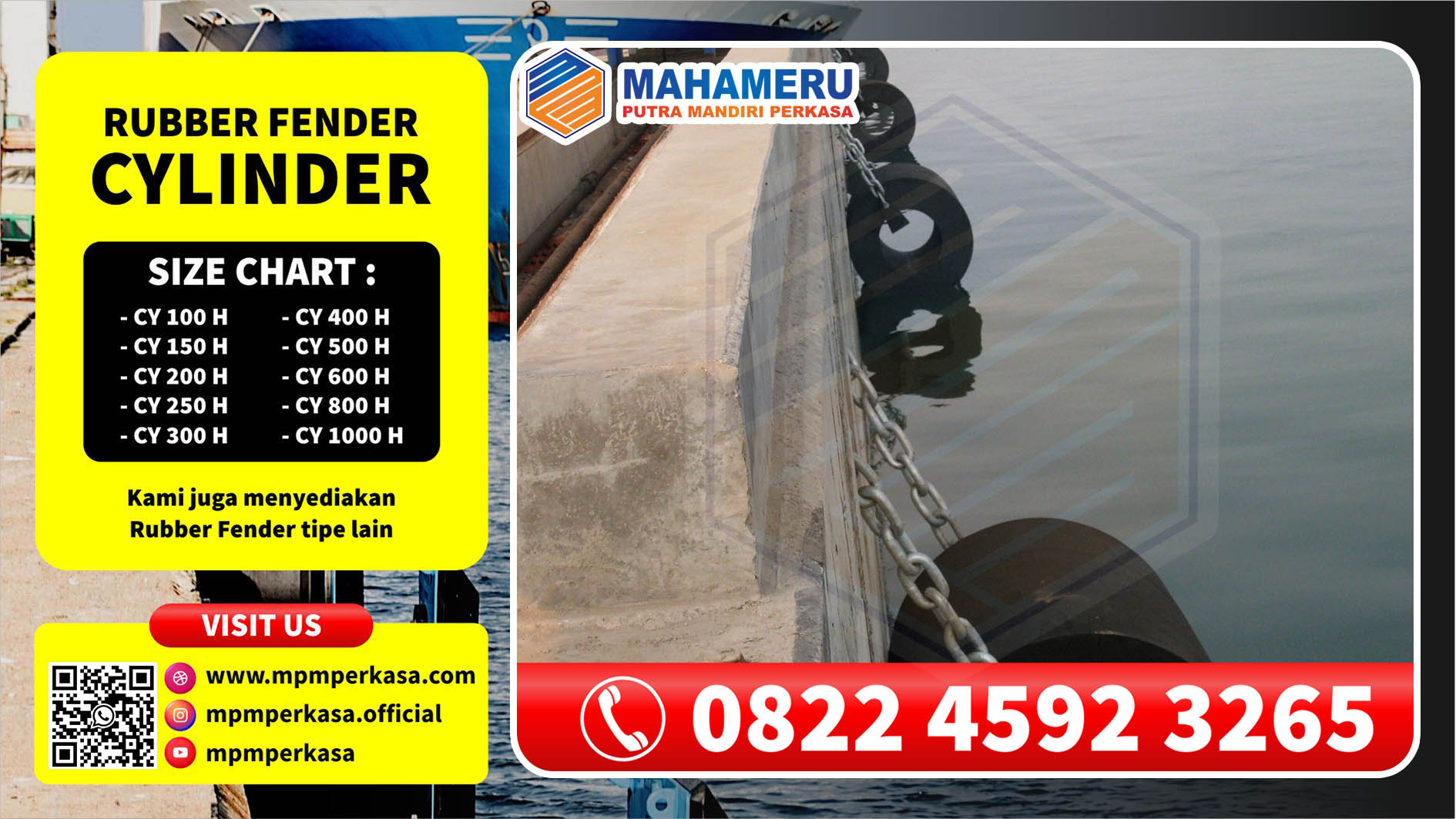 Mahameru Rubber Fender tipe Cylinder (Silinder) – Cylindrical Marine Rubber Fender adalah salah satu sistem fender yang digunakan sebagai bantalan tempat berlabuh. Karet fender dengan desain ini dapat digunakan dengan fleksibel dan mudah dalam pemasangannya. Karet fender jenis ini sudah digunakan selama bertahun – tahun sebagai pelindung kapal dan dermaga. Sistem karet fender dermaga tipe silinder ini merupakan sistem yang paling umum dipergunakan di oleh kontaktor dalam pembangunan dermaga serta melindungi bagian konstruksi dari kerusakan saat kapal bersandar.