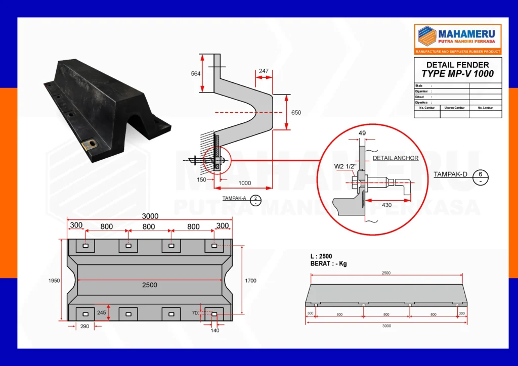 • Custom Anchor Layout: Mengingat ukurannya yang panjang, MPM Perkasa dapat menyesuaikan posisi lubang baut angkur agar sesuai dengan reinforcement bar (tulangan besi) yang ada di dalam beton dermaga Anda, sehingga pemasangan tidak memotong besi beton vital.