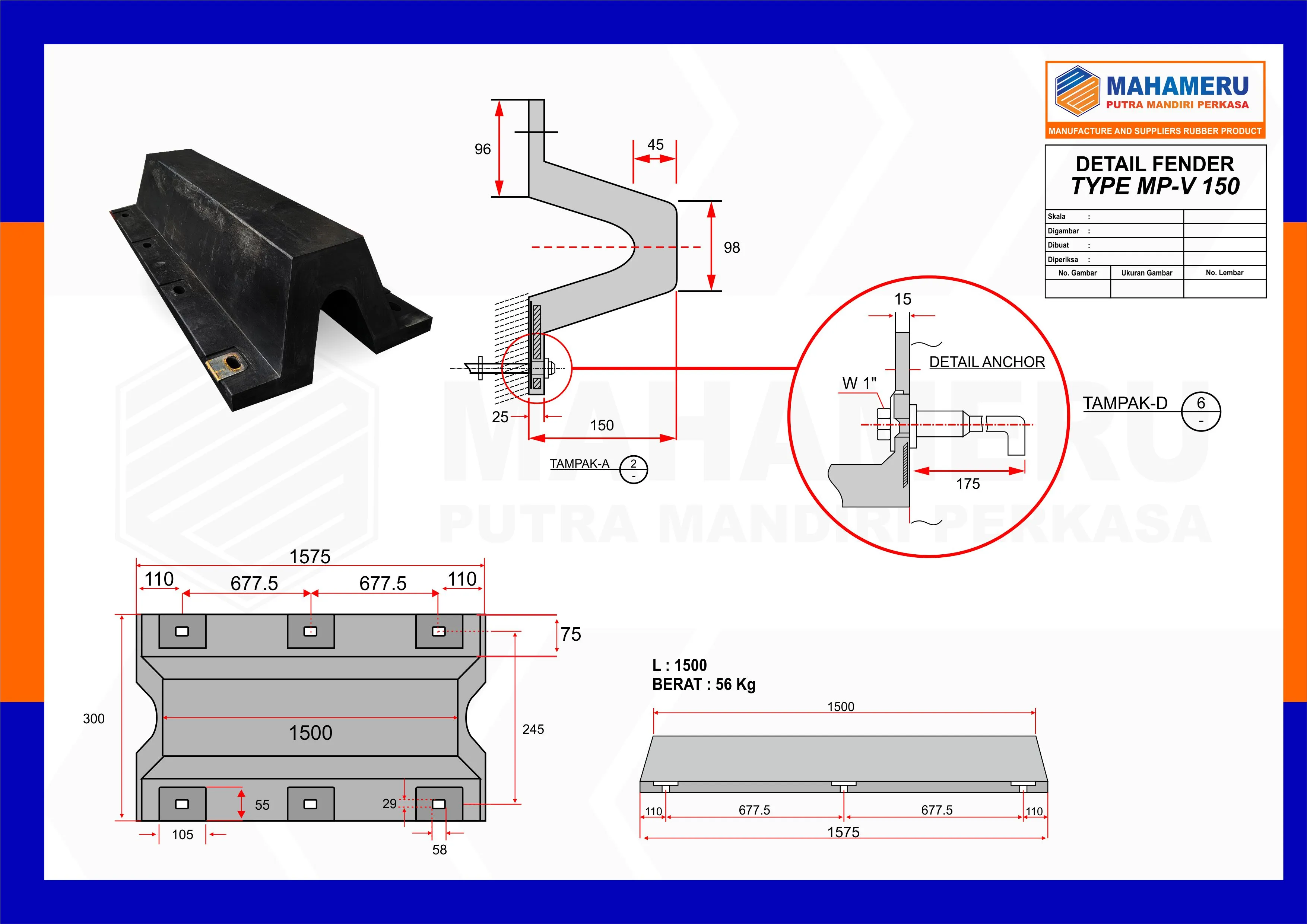 Produk yang kami tawarkan mulai dari rubber fenderrubber fender vrubber fender drubber fender mrubber fender cellrubber fender conerubber fender cylinderrubber fender squarebantalan jembatan / elastomeric bearing padrubber sheetkaret bumperpelindung loading dockasphaltic plug binderdeck drain cast iron jembatanfrontal frame fenderbollard dermagabitt bollard dermagacurve bollard dermagatee bollard dermagaexpansion joint(karet dilatasi) hingga anchor bolt galvanis.