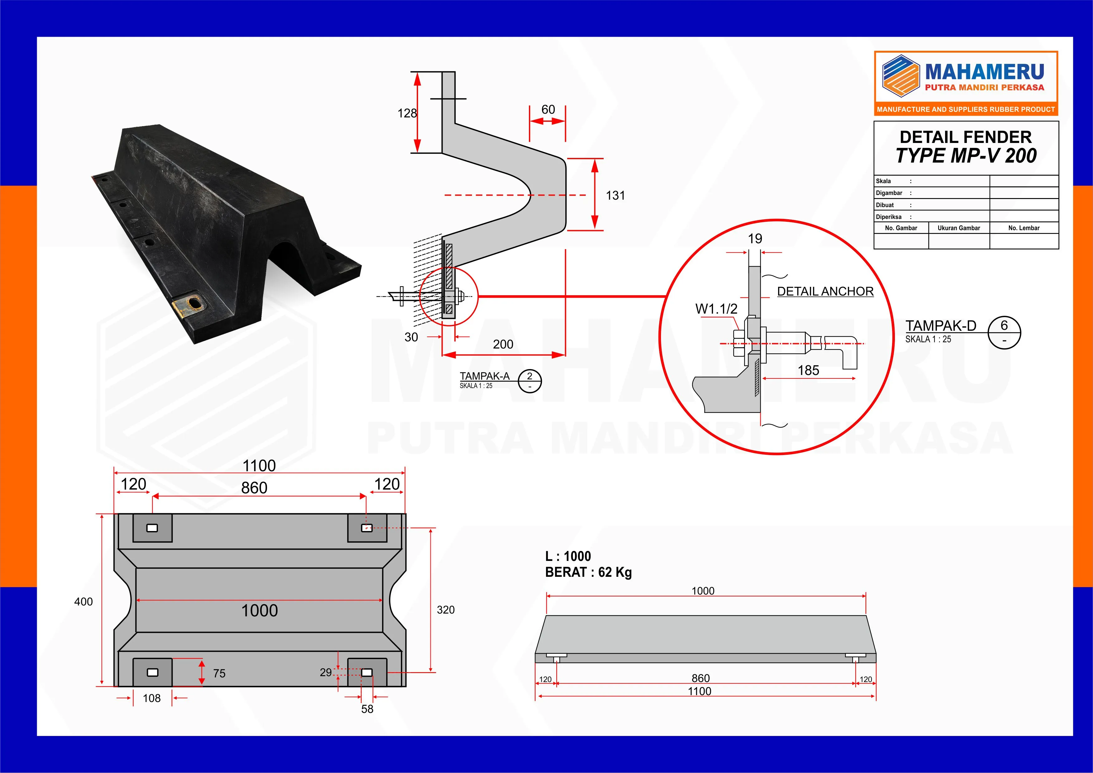 2. Ukuran 200H: Mungkin merujuk pada spesifikasi atau klasifikasi tertentu dari fender, seperti kemampuan penyerapan energi atau kekuatan tertentu. Angka “200” pada V 200H bisa menjadi indikasi terkait dengan kapasitas dan karakteristik teknis lainnya.
