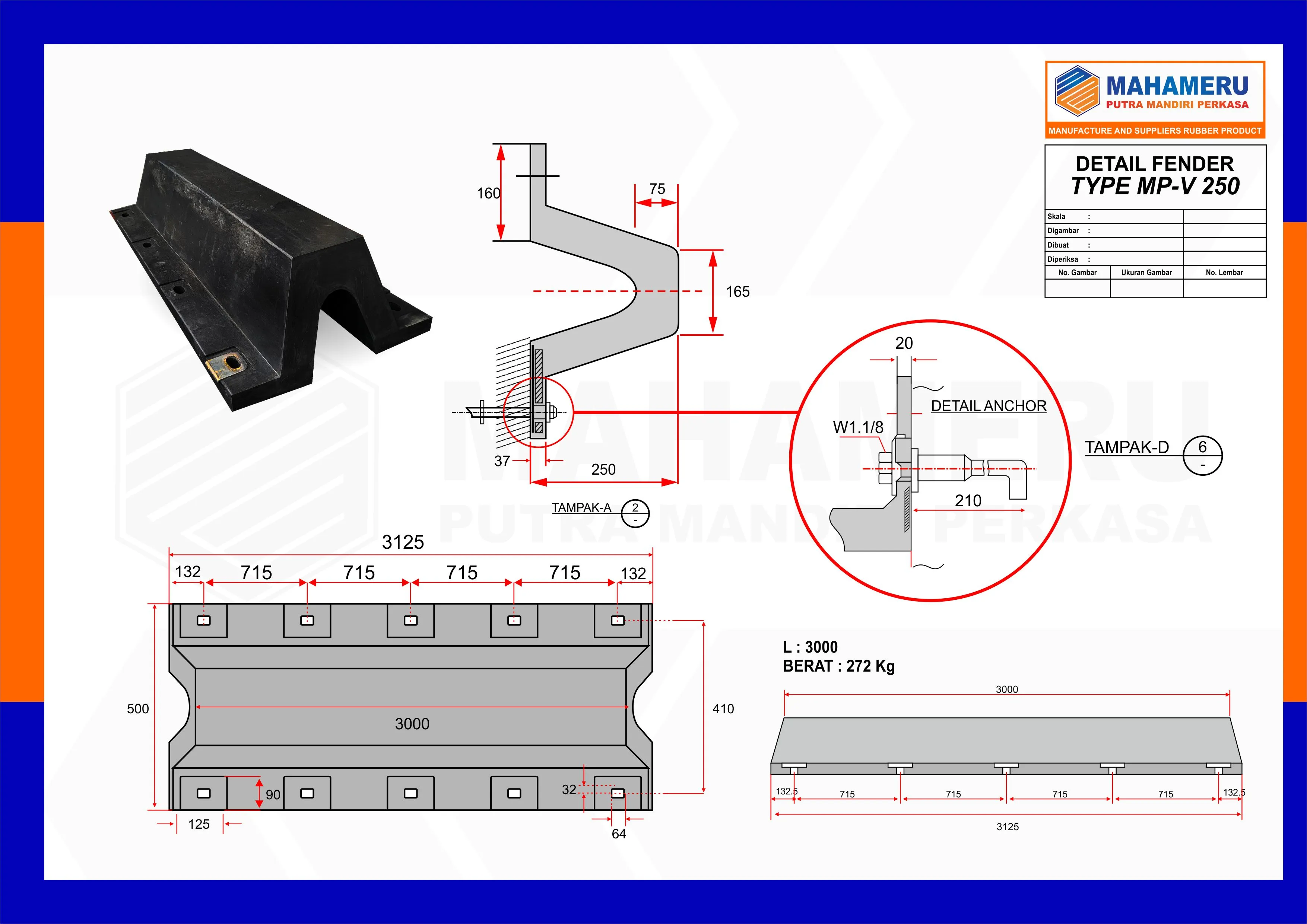 Mencari solusi perlindungan dermaga yang memberikan coverage area sandar tanpa putus? Rubber Fender V 250 H – 3000 L dari MPM Perkasa adalah jawabannya. Dengan panjang mencapai 3000 mm (3 meter) per unit, fender ini dirancang untuk memberikan perlindungan dinding dermaga yang lebih presisi, efisien, dan minim sambungan.