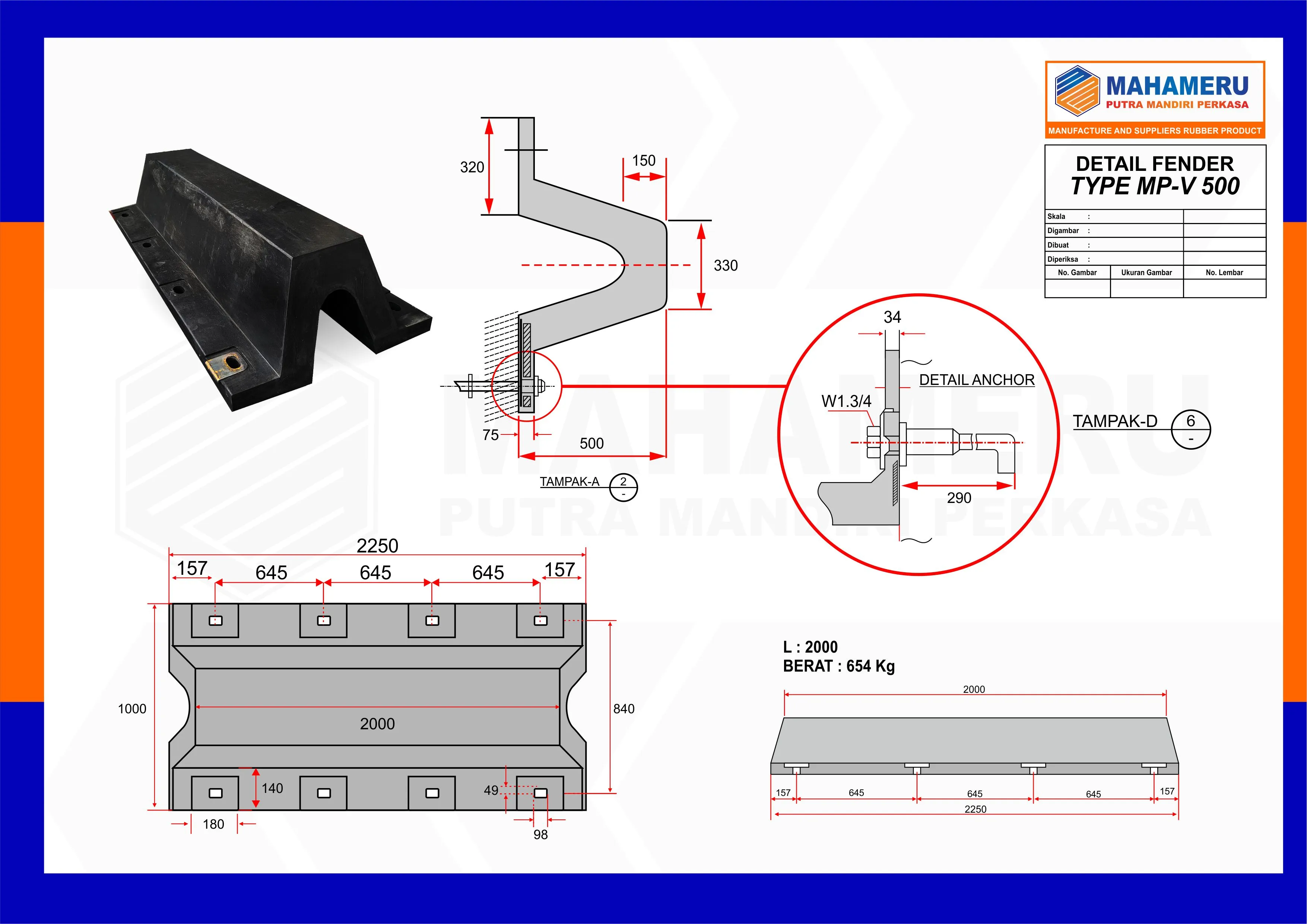 Dimensi tinggi 500 mm dan panjang 2000 mm membuat fender ini: