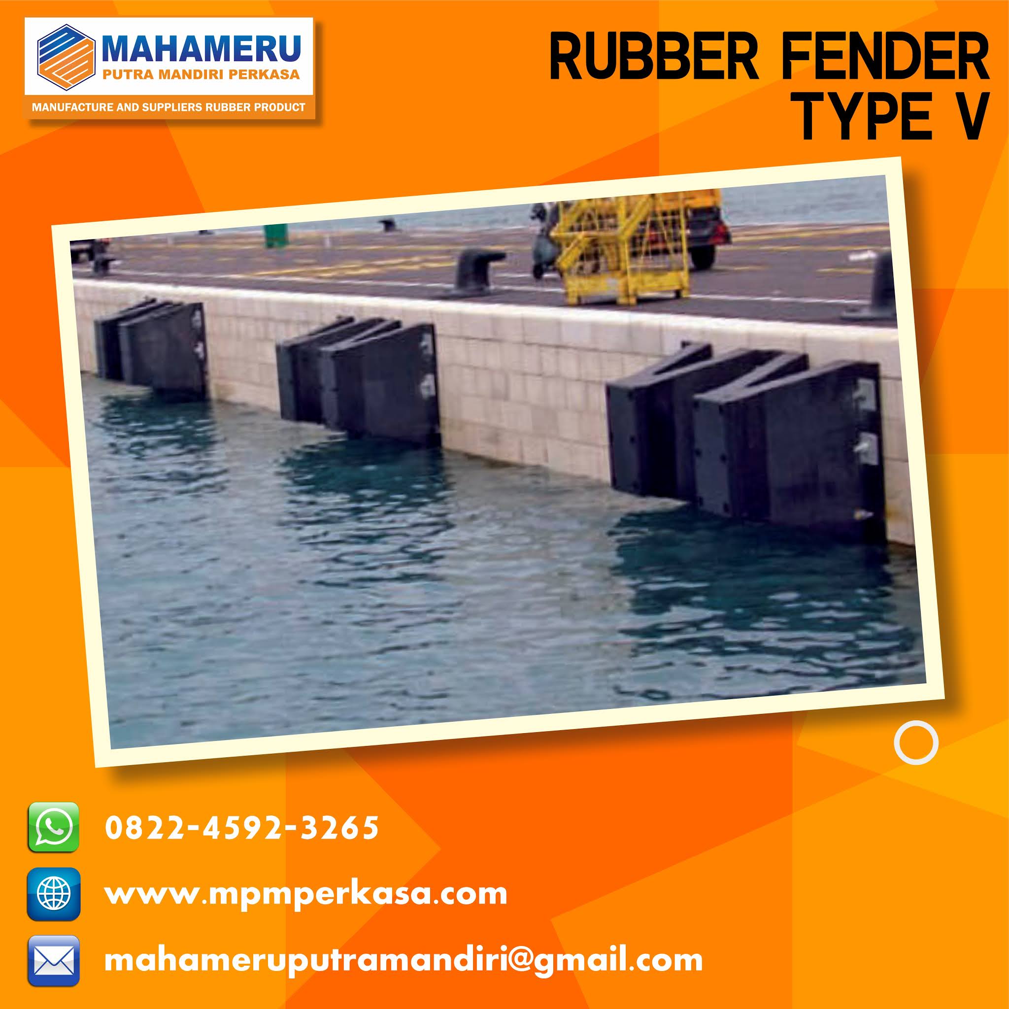 Fender marine Tipe V adalah solusi yang tepat karena selain mudah untuk dipasang, serta memberikan fungsi yang optimal untuk mencegah sudut dermaga dari kerusakan yang ditimbulkan oleh benturan kapal – kapal yang kerap terjadi di dermaga.