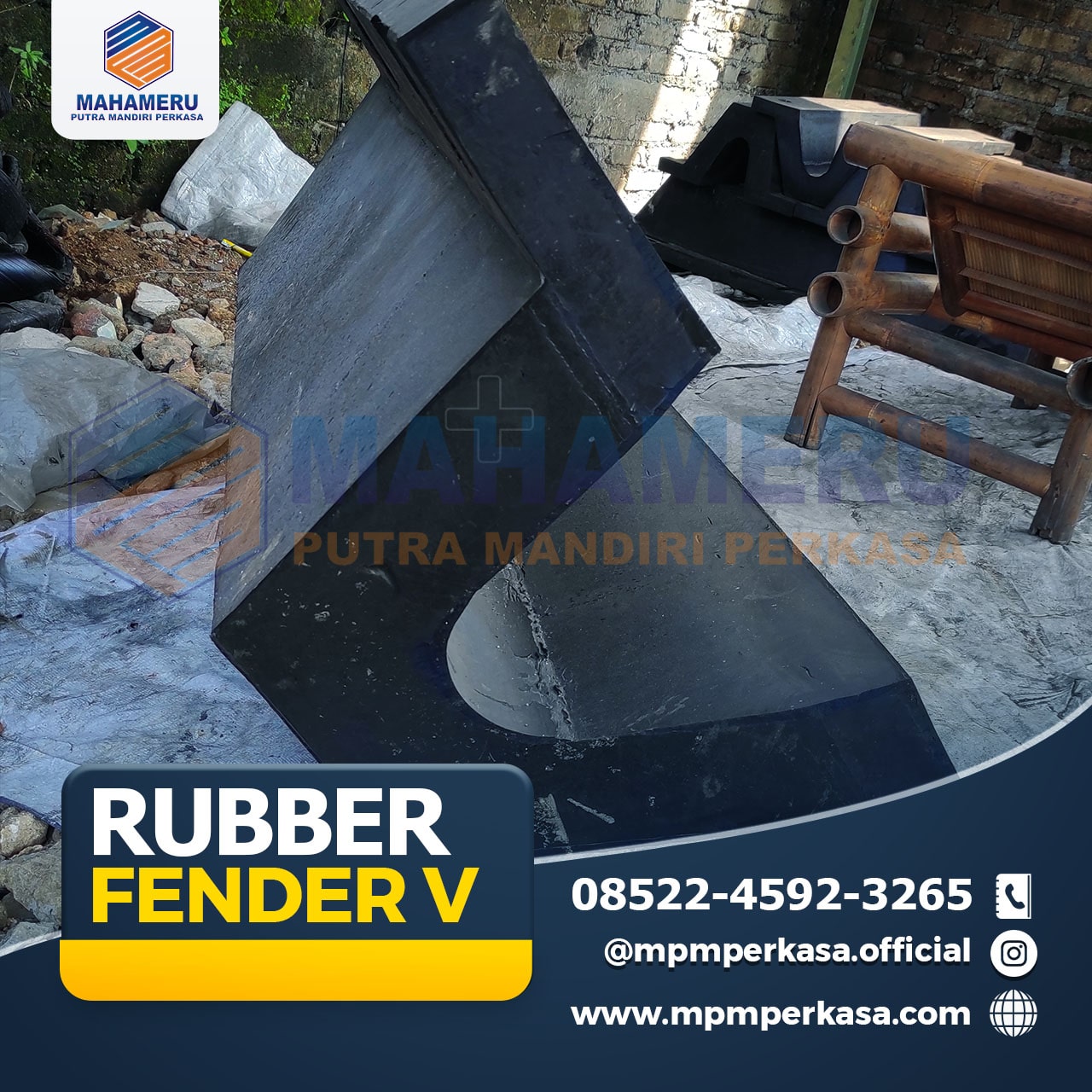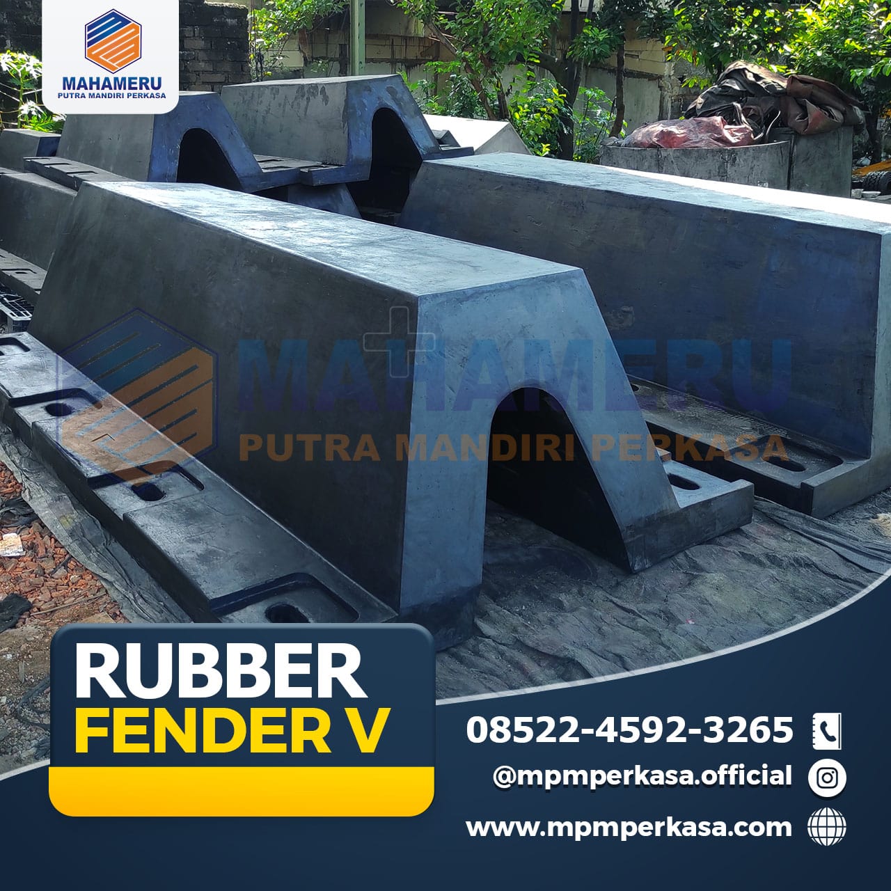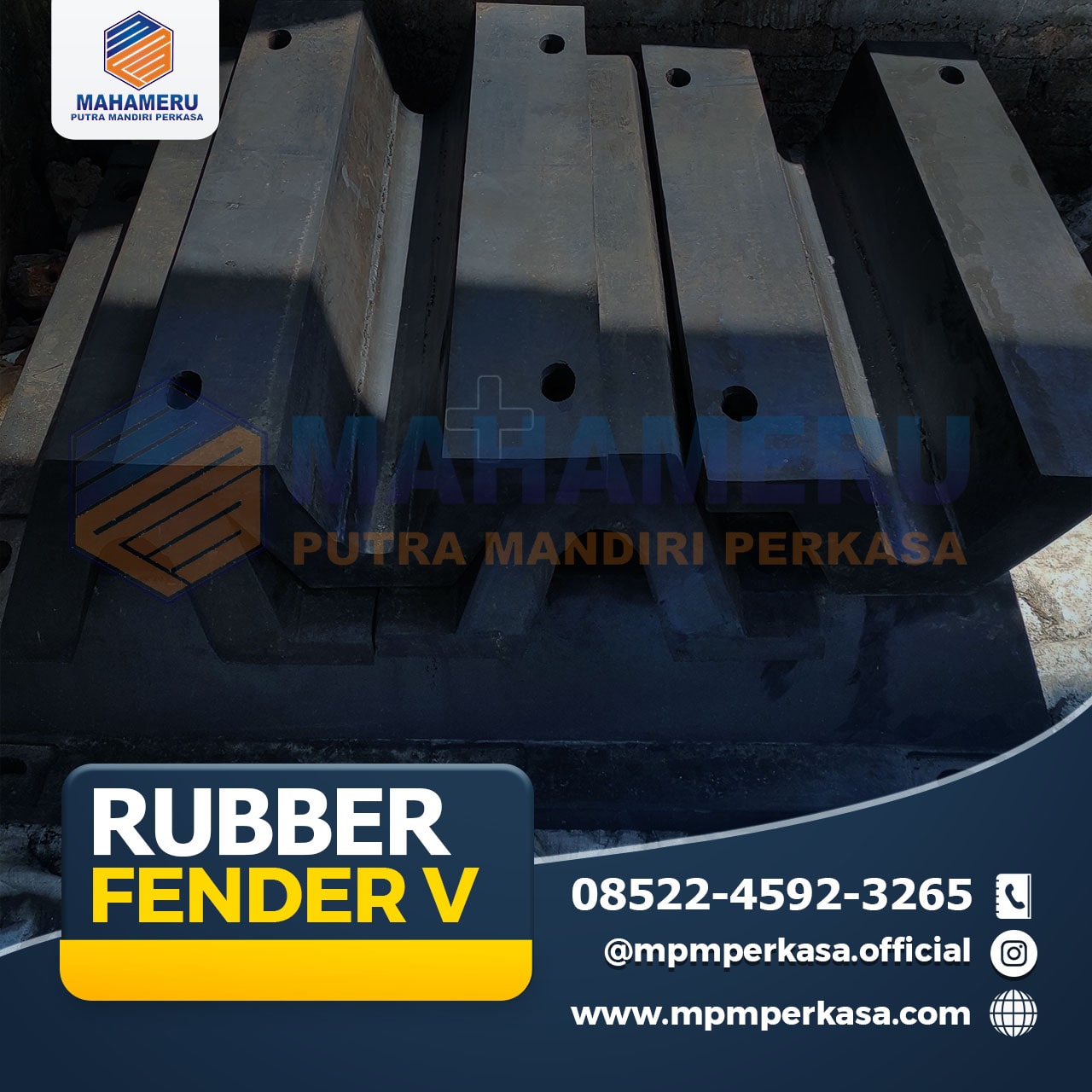 Selain dari Rubber Fender Pelabuhan V, Mahameru Putra Mandiri Perkasa juga tersedia rubber fender, rubber fender v, rubber fender d, rubber fender m, rubber fender cell, rubber fender cone, rubber fender cylinder, rubber fender square, bantalan jembatan / elastomeric bearing pad, rubber sheet, karet bumper, pelindung loading dock, asphaltic plug binder, deck drain cast iron jembatan, frontal frame fender, bollard dermaga, bitt bollard dermaga, curve bollard dermaga, tee bollard dermaga, expantion joint(karet dilatasi) hingga anchor bolt galvanis.